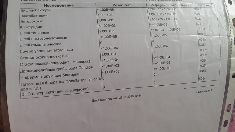 Есть и нарушения в кишечной микрофлоре: снижено количество бифидобактерий и выявлен золотистый стафилококк.