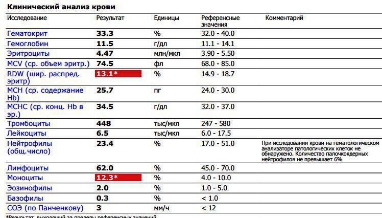В первом случае анализ можно считать нормальным. Есть лишь незначительное увеличение моноцитов, что само по себе не очень информативно.