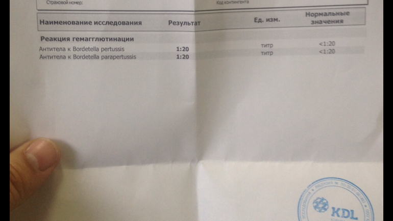 Здравствуйте! Ситуация такая: с середины октября у дочери ( ей сейчас 2,11 ,Из прививок только дошли до второй АКДС, но по мед.отводу невролога не сделали её, всех последующих нет) после посещения сада появился кашель, насморка не было, в зеве гиперемия, температура тела не повышалась, педиатр назначила симптоматическое лечение , спустя дней десять улучшение, вышли на прогулку , на следующий день приступообразный кашель ( повышение температуры тела периодические максимально до 37,5) преимущественно во время сна дневного и ночного ( около часа ночи и около пяти часов утра) минут по 5-10, зачастую до рвоты, давали синекод, ребёнок успокаивался и засыпал....такие симптомы уже около трёх недель, сдавали КРОВЬ на коклюш РГА титры 1:20( положительные от >1:20) , пропила супрекс, две-три ночи спала после него спокойно, затем снова кашель. На рентгене - затяжной диффузный бронхит. Вчерашний анализ крови прикреплён в фото . У младшего ребёнка тоже кашель преимущественно в ночное время, тоже периодически до рвоты( оак вчерашний в пределах норма, рентген ОГК-картина хар-ная для орви и бронхита, симптомы у него на недели полторы две позже начались , привит двумя АКДС, ему почти полтора годика). Может ли это быть рс- инфекция? Кровь ( на фото) вирусная? Коклюш? Каковы дальнейшие действия?