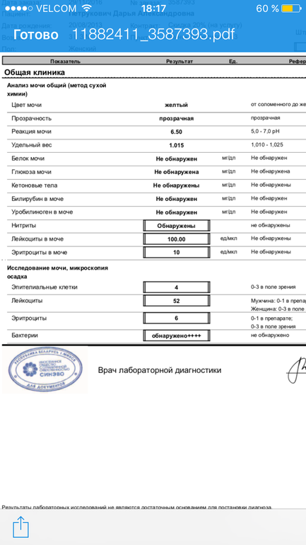 Добрый день. У девочки 3 года учащенное, болезненное мочеиспускание, температура 37 после посещения бассейна. Сдали анализ мочи, он плохой. Сможете прокомментировать?