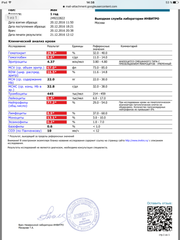 У Вас у самой признаки умеренной анемии, больше ничего.