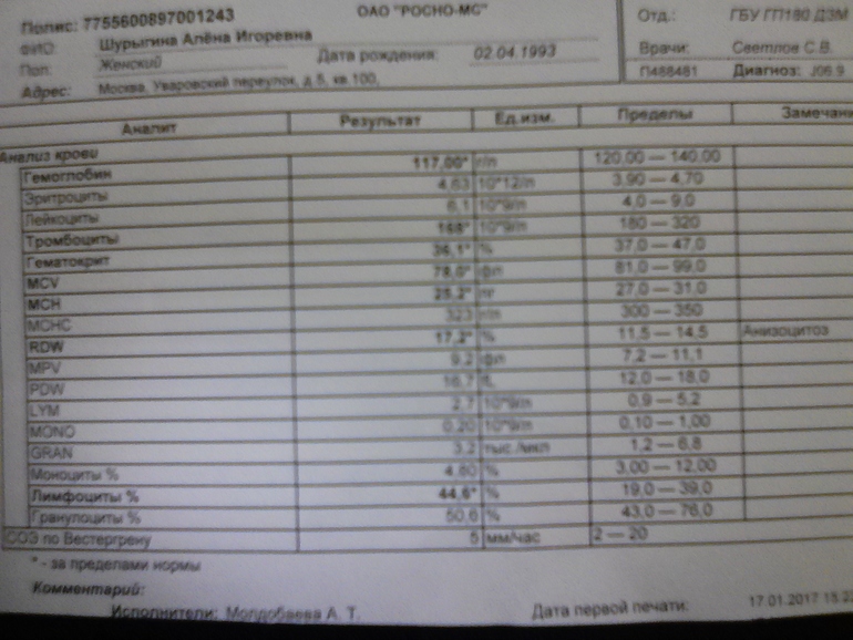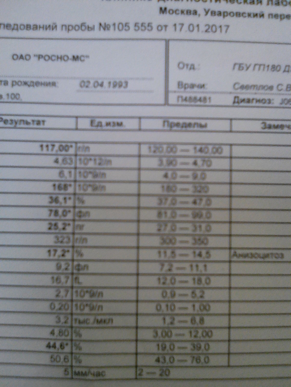 Ешьте больше продуктов, богатых железом: мясо, гречка, яблоки. Через месяц сдайте анализ крови повторно. Если анемия не пройдет, а усугубится, обсудите со своим гинекологом необходимость приема препаратов железа.