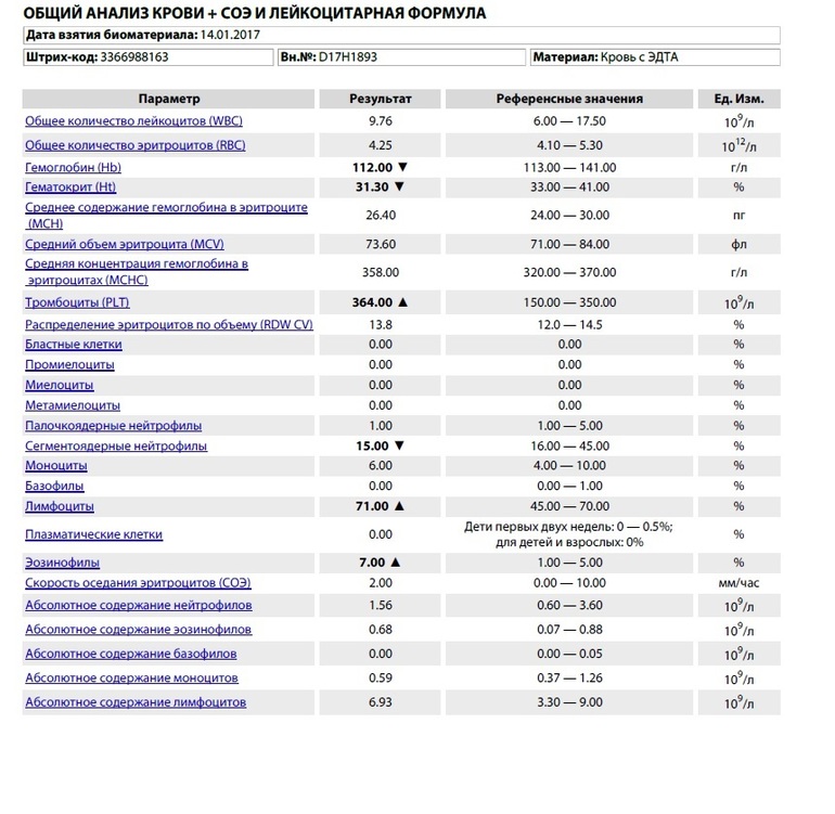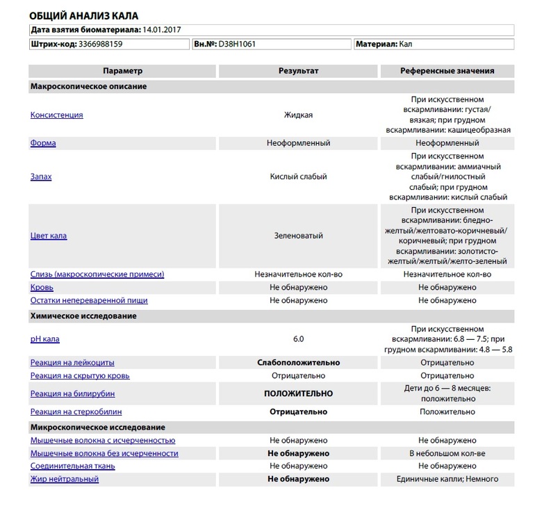 В общем анализе крови у ребенка имеются признаки аллергической предрасположенности (повышен уровень эозинофилов). В общем анализе кала имеются невыраженные изменения, свидетельствующие о недостаточном переваривании пищи в тонком кишечнике. При исследовании микробного пейзажа выявлен ряд условно патогенных микроорганизмов и болезнетворный золотистый стафилококк - на фоне снижения количества полезных бифидобактерий.