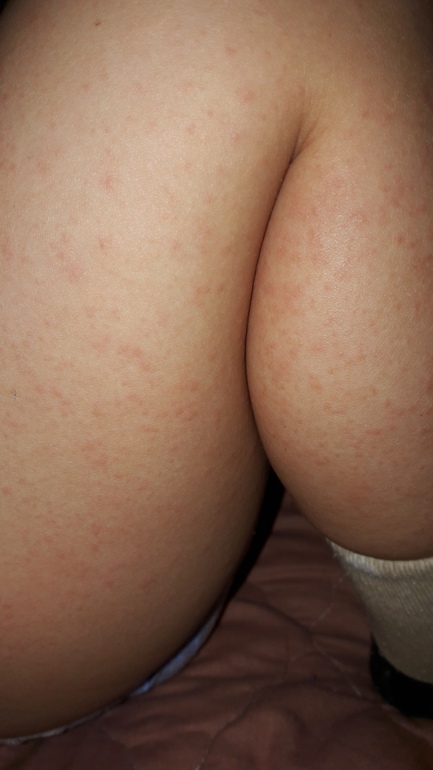 Здравствуйте! Нам 1,8 , уже не знаем как бороться с сыпью. Все началось с красных подкожная прыщей на правой ножке. Появлялось очагово . Пошли к дерматологу и нам сказали диагноз "аллергический дерматит". Лечили нам его кремген+липо лосьон+фенистил по этому 14 капель на 7 дней лечение. Вроде начало сходить. Но через какое-то время, у ребенка начались проблемы с поджелудочной, была рвота. Лечили с нашим педиатром, Фосфалюгель+Креон 10000, что-то ещё, не помню. Потом наладилось с желудком и опять сыпь. Я не пойму на что! Сладкое не ест, была погрешность, дедушка без моего разрешения дал Барни. Опять то же лечение, только оно не помогает, сыпь усилилась. Добавила ванночки с чередом. Сыпь на ножках, ручках и щечки красные,кожа сухая очень!(Подскажите, направьте , что ещё можно сделать. К врачу только в среду, все было занято. Прилагаю фото.