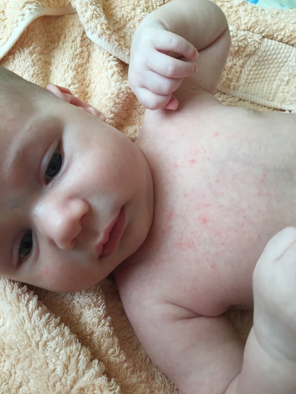 Здравствуйте! У моего сына ( ему полтора месяца) появилась сыпь на груди ,на лице, а так же на волосистой части головы. Что это ? Пищевая аллергия? ребёнок находится на ГВ. В таком количестве сыпь уже 2 недели.