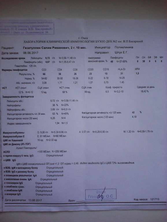 В целом, показатели иммунограммы нормальные. Единственное, что обращает на себя внимание, - это наличие антител к ЦМВ. Обнаружение одновременно антител двух типов (G и М) и высокая авидность Ig G свидетельствуют о том, что процесс не "свежий", а имеет место повторная активация хронической цитомегаловирусной инфекции.