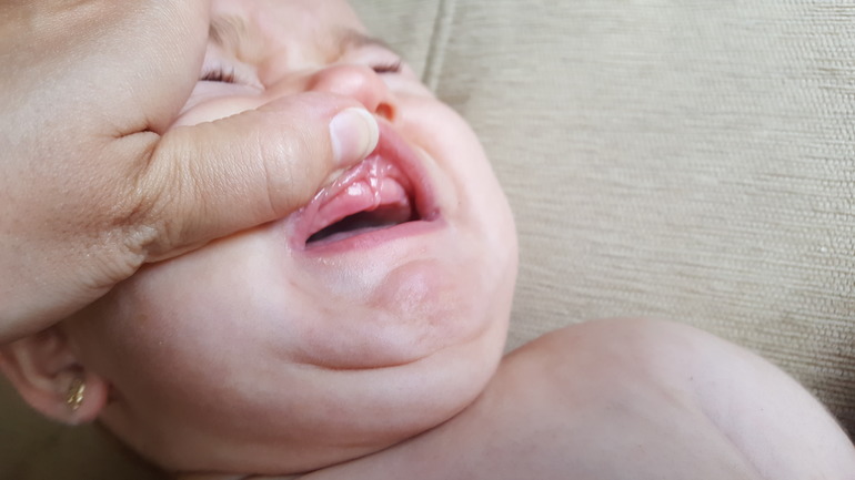 А нижних зубов еще нет? В подавляющем большинстве случаев первыми появляются нижние резцы. Десны, конечно, набухшие. И рвота, и поперхивание при этом могут быть из-за повышенного количества слюны. Однак только тогда можно списывать рвоту на зубы, когда исключены все другие причины. Поэтому лучше все-таки малышку показать педиатру.