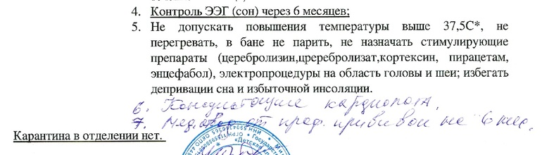 Недавно были на дневном стационаре в неврологии и там нас капитально обследовали, пришла не очень хорошая ЭЭГ, врач невролог сказала может дать нам медотвод до повторения ЭЭГ через полгода, но он якобы не критичный и можно и не давать отвод. Пока я думала, нужен он нам или нет она сказала: вот вам медотвод. Теперь не знаю вклеивать ли это в карту? Стоит ли ждать полгода?