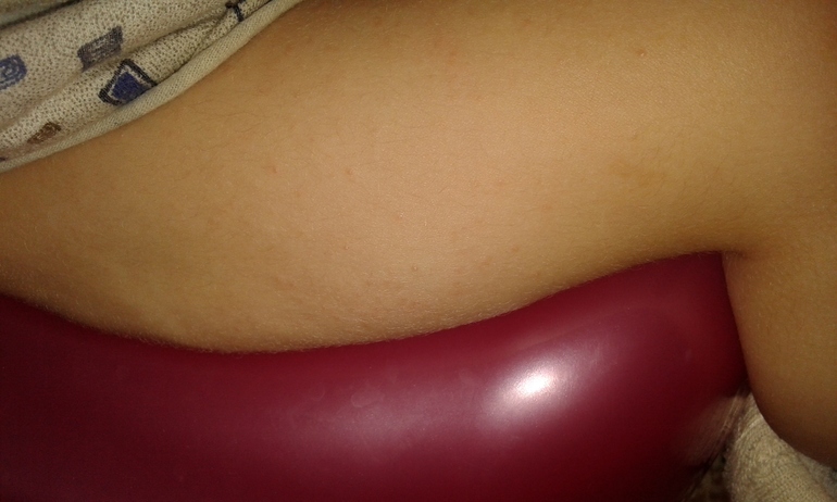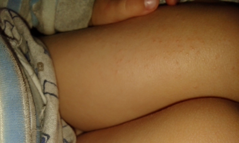 В конце апреля я за метила на ножках выше коленка безцветную сыпь, в глаза не бросается, ощущается под рукой, с щероховатостю.теперь она распостранилась по ножкам и на ручке есть