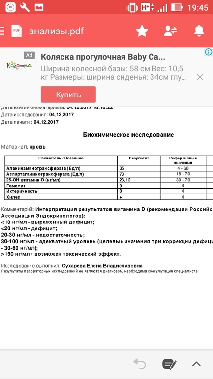 Здравствуйте, Татьяна Васильевна. Мы живем в маленьком поселке. Соответсвенно уровень медицины такой же маленький) мы ездили на обследование в Екатеринбург. Там выяснилось что до сих пор у нас не сформировались ядра окостенения тазобедренных суставов, плюс большой родничок. Там педиатор сказала сдать кровь на витамин д. Сдавали в последний день перед отъездом, т.к. боялась что ребенок не подпустит массажиста. Сейчас пришел результат. Наш педиатор назначила 5 капель вигантола утром. Мне кажется что мало. Жду вашего мнения.