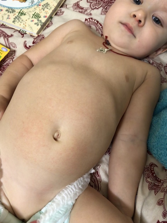 Здравствуйте. Началась 19.12. К вечеру высыпало на животе. На утро почти не видно было. 20 с утра почти не видно, к вечеру на животе и попе. 21 с утра почти не видно, к вечеру живот, попа и ноги. Ничего не ели криминального. Всё знакомое. 21-го: каша гречневая молочная из пачки. Обед щи съела немного. Ужин греча на воде. Биолакт. Нам 1 год 9 месяцев.