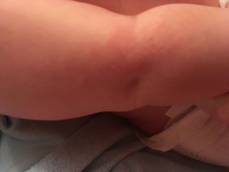 Добрый вечер!Малышке 3 месяца,на ручке,ближе к локтю,с внешней стороны немного появилась сыпь.Мы на гв.Что это,аллергия?Можно как-нибудь фото прикрепить?