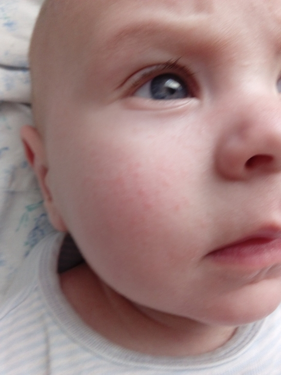 Здравствуйте,подскажите что за сыпь?Потница?Аллергия?....Заранее спасибо!Мы на гв,прикорм еще не ввела.Нам 5 месяцев.