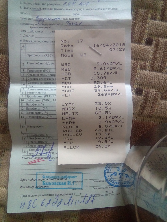 здравствуйте! ребёнок чувствует себя хорошо. Сегодня сдали анализы.