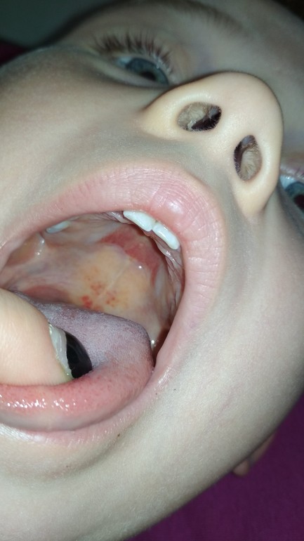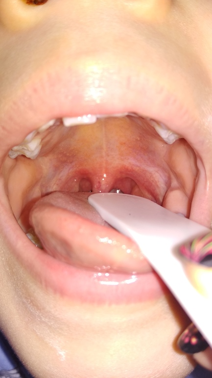 3. Проходили неделю в сад и 12 мая опять Ярик сказал, что глотать больно (фото прикладываю, там где сыпь на нёбе как прыщики, фото с белым шпателем), темп со второго дня 37-37.4. По виду - как было при скарлатине только без сыпи по телу. Никаких анализов пока не сдали. Больно глотать слюни уже 3 дня. Пьем иммудон, фарингосепт, в нос физраствор-полидекса-проторгол, эриус и синупрет.