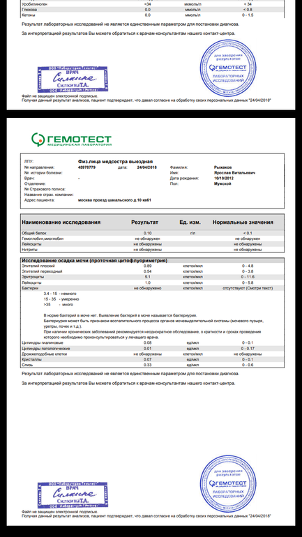 2. 15 апреля Ярик пожаловался на то, что больно глотать (фото горла прикладываю, фото на второй день болезни), на третий день - высыпания на спине, на четвертый день - по всему телу. Сыпь, как мурашки, розоватые. Сыпь прошла через 7 дней. Мазок и кровь в начале не назначили. Поставили скарлатину. Пили антибиотик и симптоматически лечили горло. Анализы прилагаю на 12 день болезни и еще через неделю (гемотест от 24 апреля и кдл от 02 мая). Кожа не облазила. Диагноз поставила заведующая на дому, далее нас наблюдал педиатр и лор - они оба выразили сомнение в диагнозе и удивление, что не взяли мазок и это мог быть мононуклеоз. Вопрос: что видите вы по анализам и клин.картине?
