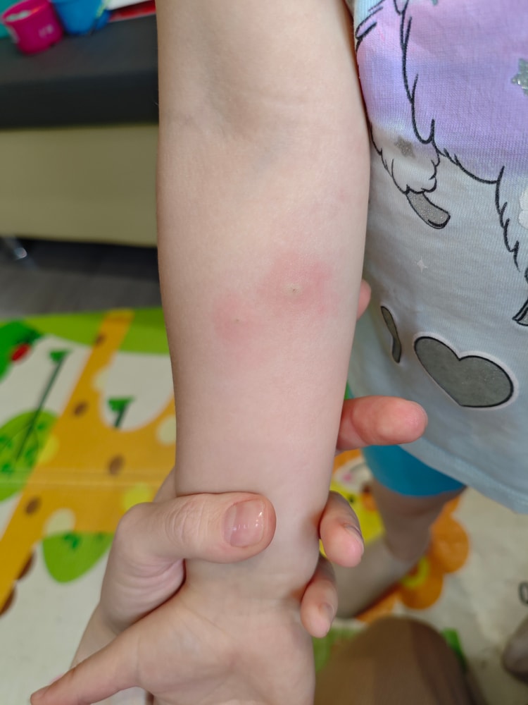 В субботу утром новых не появилось. На ногах и в волосах они засохли, а на руках стали больше. Поехали к врачу. Новый диагноз аллергия или укусы. Не понимаю откуда укусы могут быть, так как на улице холодно и ребенок гуляет в комбинезоне.