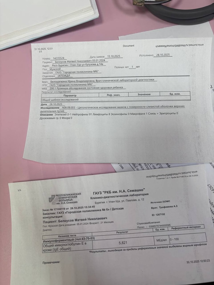 Мы сдали все необходимые анализы от нас ничего критичного у ребёнка не выявлено но насморка так и не проходит