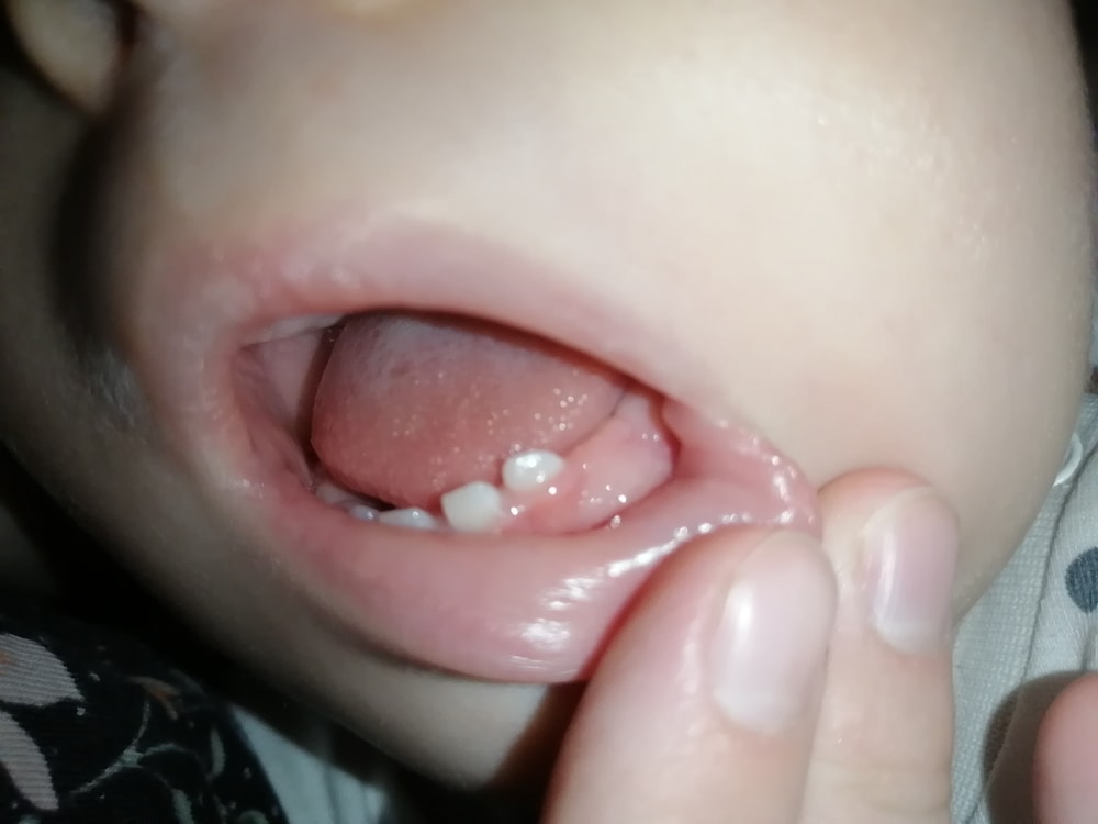 Здравствуйте, подскажите пожалуйста, кто знает. У сына набухшие десна, это режутся зубы? Клыки? Жевательные? Уже около месяца так. Постоянно слюни и в рот тащит все. С правой стороны на месте клыка точечка. Неужели стоматит? Кто-то сталкивался с подобным? Фото как смогла сделала, надеюсь немного хоть видно.