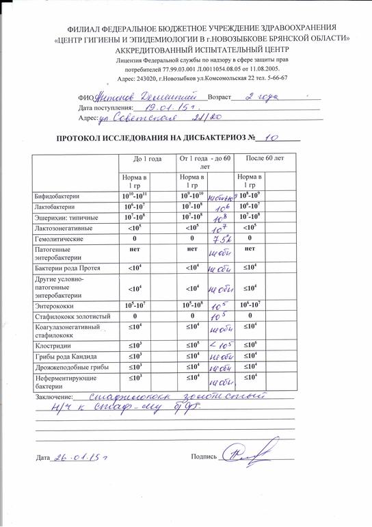 Где-то месяц назад ребенок 2х лет по ночам стал очень плохо спать.Как будто у него что-то начинает невыносимо болеть.Невозможно было его чем-либо успокоить. Но через какое-то время эта боль,видимо,затихала и ребенок успокаивался..Бывало 2 мин кричит очень,бывало и до часа доходило. Я подумала,что у него болит живот.Сдали кал на дисбактериоз. Вот результаты.