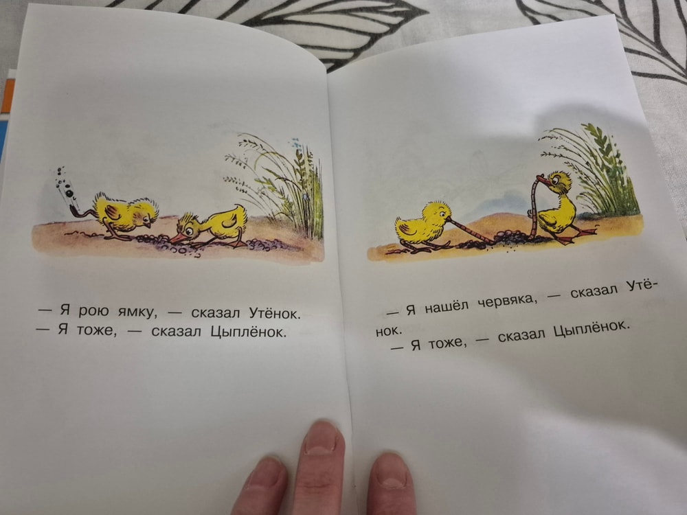 В поисках книжек вот такого формата, где минимум текста и каждое предложение нарисовано на картинке. Ребенок безумно полюбил эту книжку, я ее уже наизусть рассказываю, хочется нового