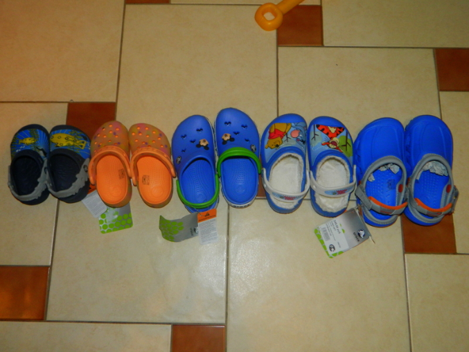 Покупала я прошлогодние кроксы без ребенка, наглаз. Носили 6/7 и все было отлично.Аккурат к концу сезона (с мая по середину сентября на море) ребенку они стали впритык. Отлично подумала я.