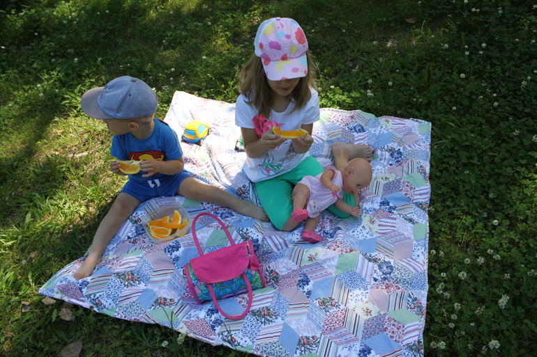 Увидела это одеяло еще в начале весны и решила, что точно возьму такое на лето, т.к. мы с детьми очень любим устраивать пикники на природе! Да и расцветка сразу привлекла мое внимание. Люблю пэчворк! И вот уже месяц мы являемся обладателями этого красивого и удобного пледа.