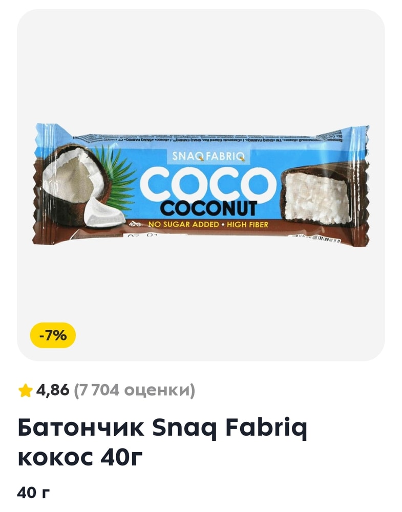 Батончик 40 г стоит 39р по карте