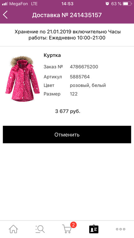 Здравствуйте есть в пристрое куртка reima silda размер 122. Забирать в пункте самовывоза wb ( хранение до 21 января) г. Железнодорожный ул новая д 49. Цена 3677