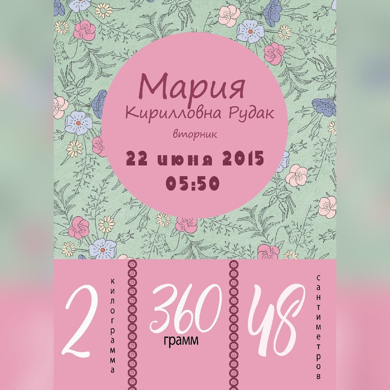 Девочки! Такую метрику сделала подружке, как вам?