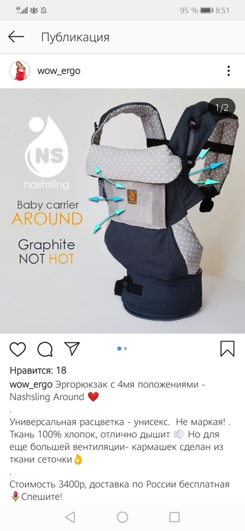 Слинг совмещён с эрго-рюкзаком по заявке производителя.