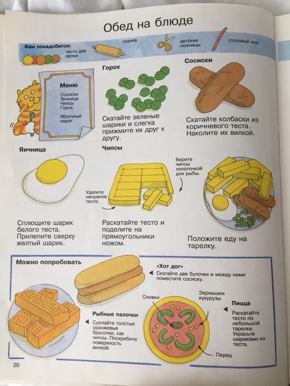Откопала она где-то старую (еще из моего младенчества) книжку про игры своими руками. Там "мануал" 😅 по лепке пластилиновой еды для пикника: