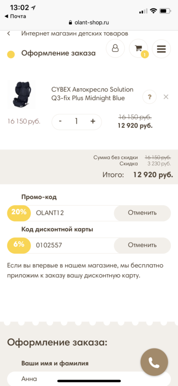 Не ожидала я такого от этого магазина. Вчера была скидка, заказала автокресло cybex . Получилась отличная цена!