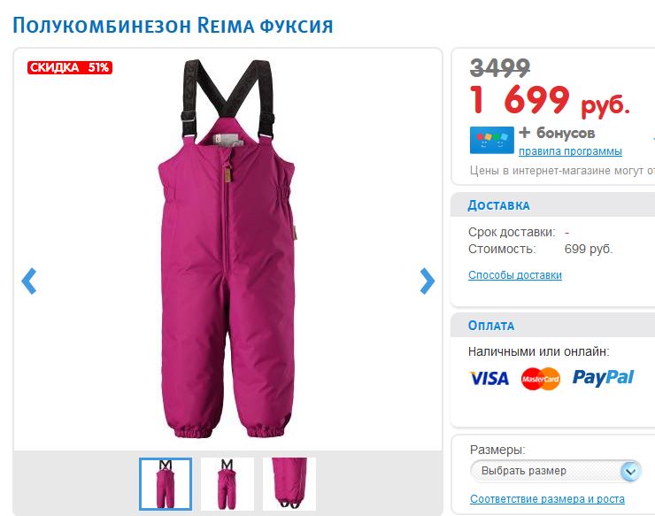 С разрешения модераторов: пристрою полукомбинезон Reima Matias, фуксия р.98 из ДМ, по цене 1699р. Полукомбез приедет 17.12 в ТЦ Июнь, Красноярск. Если кому-то нужен, то могу выкупить и отдать, или отправить почтой.
