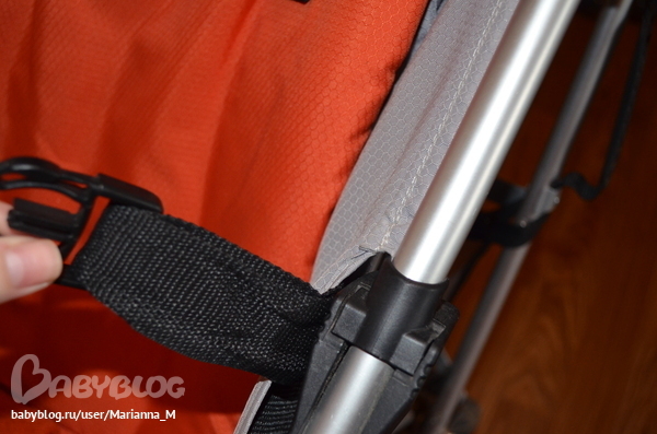 С двух сторон коляски я сделала эти крепежи. Можно просто оставшийся кончик от колясочной стропы на эти же трубки натянуть, подтянуть спинку и завязать. тоже держится, но думаю не на долго этого хватит.... а мое изобретение служ почти год)))) надеюсь помогла!!! пишите....;)))))