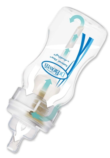в NUK через дырочку выходит лишний воздух, но на CВ мы перешли, когда колики уже не были такой сильной проблемой. Когда подбирали бутылочки, муж среди многих других купил Д-р. Браун - меня лично забавляет такая хитроумная противоколиковая система со всякими трубочками (бутылку наверное по пол часа надо мыть), по мно это больше маркетинговый ход, нежели реальная помощь малышу.