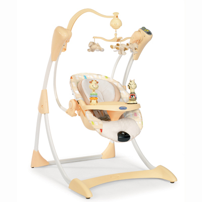 У на качели тоже GRACO использовались до последнего, особенно помогали когда зубы резались, в них укачивали под спокойную классическую музыку - она в них даже ночью пару раз спала, зато и мы поспать смогли, нашей Софии очень нравились, а щас стоят на даче кукл в них качаем, музыку слушаем, на кнопочки нажимаем, у нас ребенок подвижный, поэтому в шезлонге бы не сидела точно. В нашей ситиации - однокомнатная квартира и кстати нам уже стул CICCO отдали к тому времени, и поэтому получилось что качели стояли в комнате, а на кухне стоял стул, который в свою очередь раскладывался почти горизонтально, так что мы обходились без шезлонга. Удачи ))))