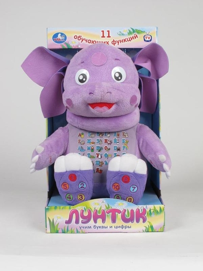 Мне еще приглянулась игрушка от компании "Умка",интерактивный "Лунтик" знает алфавит и цифры,складывает цифры,цвета,,рассказывает сказку и поет песни,а так же стишки.