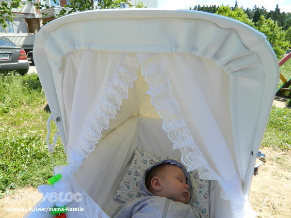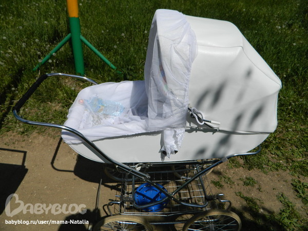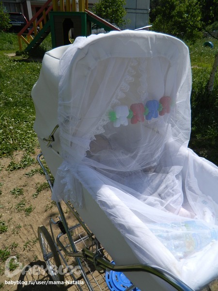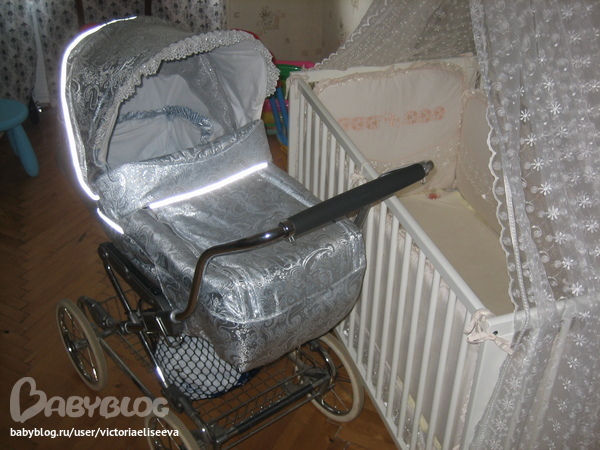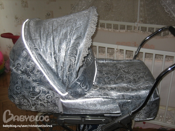 У вас Фаворит? Если не ошибаюсь?))) И я сама люблю такие коляски, я в рождение первенца не искала из ретро ассортимента, взяла современную, но именно вот с белыми колесами, короче, элегантную классику))) Вот тоже оттюнинговала, правда, я полностью всю обивку заменила, сшила: