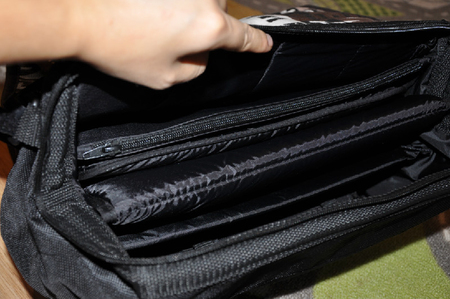 Сумка огромная и вход в сумку нормальный, только молнию надо до конца расстегивать. Зонтик есть, но я им воспользовалась только один раз, мне показалось не очень удобно.