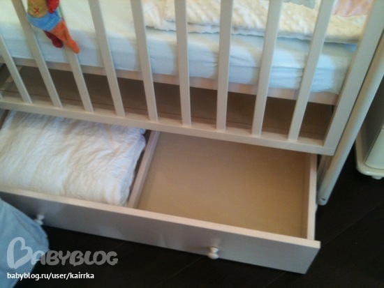 - передняя стенка кроватки убирается и сдвигается вниз (правда, с грохотом - делали это всего один раз))