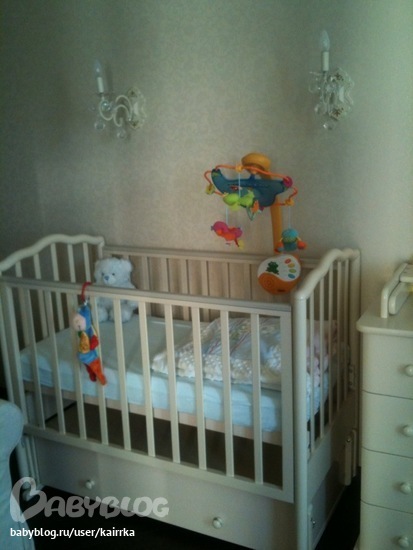 - два уровня расположения дна. Одним из критериев выбора было, чтобы нижний уровень расположения дна был как можно ниже, т.к. читала отзывы по другим кроваткам (например, Регина той же Можги), что детки уже, когда начинают вставать, могут вывалиться из кроваток из-за высокого расположения дна.