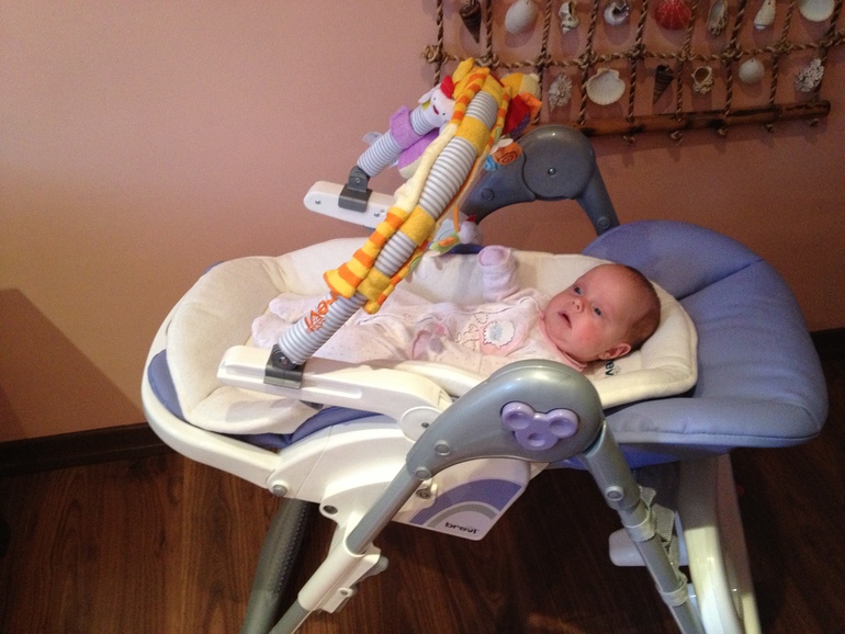 Выбор в магазе был небольшой, тоже выбирала между пер перегой, там было три ходовых модели, а еще камовский был стулец,он дешевле на 1,5 тыс бреви. Все стулья в основном в одном экземпляре, только пер перега сиеста у них была на складе в коробке и бреви в фиолетовой расцветке. У пер переге не было в комплекте матрасика и дуги-продавцы сказали, что это все можно заказать в инет магазине(за дополнительные деньги конечно), у кама тож в комплекте матрасик и дуга с игрушками,но он был единственный и колеса грязноватые(не люблю покупать последние вещи) Стульчиком мы все довольны, сегодня увидела вот такую вещь-ребенка можно самой подкачать(передние ножки стоят плотно, а задние с колесами -очень удобно