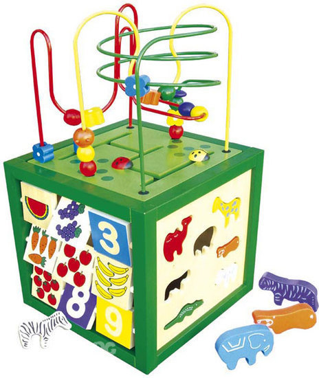 Мой взгляд, не имеет смысла, игрушка габаритна, но как-то быстро наскучивает малышу, считать он точно еще не будет, а когда будет, удобнее плоские пазлы использовать, книжки, чем куб... Вставлять животных... поверьте, и в 2 года не вставит)))) а ближе к трем начнет понимать, просто формы - треугольник, шар, кубик вставлять проще, чем животных, они очень сложные.... А лабиринт, мой деть как-то мало с ним играл.... Короче, либо все по-отдельности, но вот эту громадину, не вижу смысла...