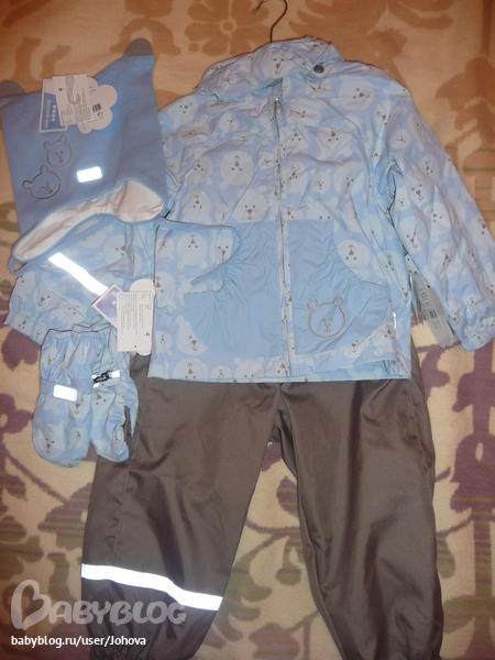 А у нас Лесси ветровочный с мишкам, нежно голубой и штаники коричневые, плюс шапочка и краги))) ЭХХХХХХХХХХХХ, жалко что на постарше, уже такой красоты не найти((((( Будем в серо-черно-оранжевой гамме одеваться, бррррр, как я ее не люблю(((