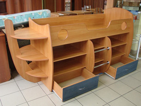 Кровать стильная, но меня немного смущают полочки (вживую не видела, сужу по фото). По-моему они очень глубокие и не очень высокие, то есть проблематично будет доставать что-то из глубины. Вещи там тоже особо не сложишь-все на виду и пылиться будет, только игрушки или книжки.