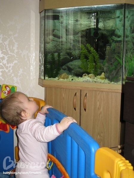 Любимое дело, может, минут по 15 вцепившись за бортик манежа, наблюдать за рыбками