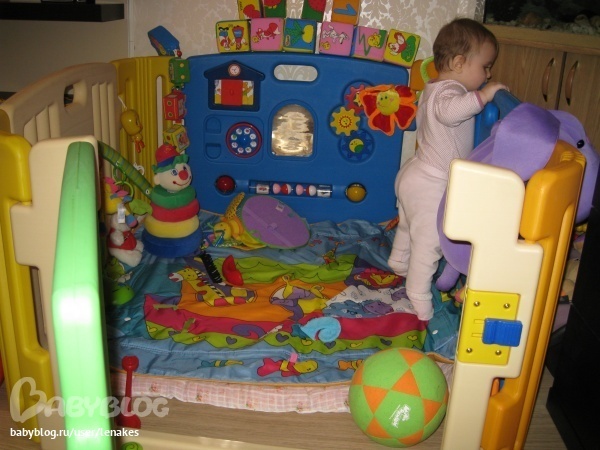 Я его просто обожаю! До чего же он удобный, яркий, продуманный. Я редко оставляю дочь с закрытой дверцей, поэтому как манеж мы его и не используем. Ребенок просто сам залазит через открытую дверцу и играется внутри как в домике. У нас там живут все Настюшины игрушки. Дочка очень любит играть с панелькой, сама уже все крутит, вертит. К нам часто приходят в гости детки постарше и сразу же бегут в наш «домик», закрываю дверцу и играют внутри. Так что я думаю ,этот манеж надолго поселился в нашем доме.