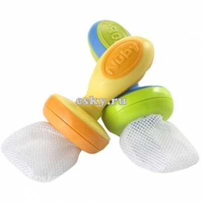 у нас нуби, яблоко и прочие фрукты даем... очень нравися с 6 месяцев пользуемся