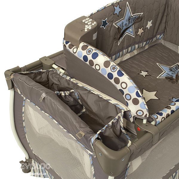 МанежиНа рынке появляется все больше и больше многофункциональных манежей-кроваток. Современные дизайнеры и конструкторы пытаются всё нужное для первых дней малыша собрать в одном изделии. Например манеж-кровать Звезды от известной американской компании Baby Trend.